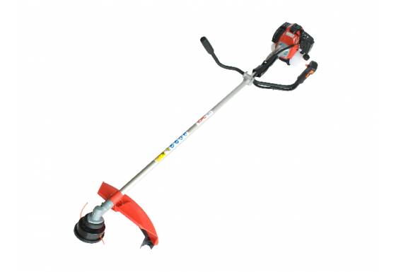 Desbrozadora de 2 tiempos con manillar abierto, incluye cabezal de nylon, disco de 3 puntas y arnes